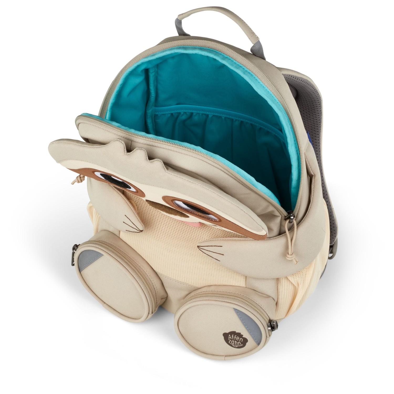 - Ziehzunge; Klettpfoten; Geheimtaschen für kleine Schätze; Bauchtasche; gelbe Druckpunkte für leichtes Öffnen mit Kinderhänden