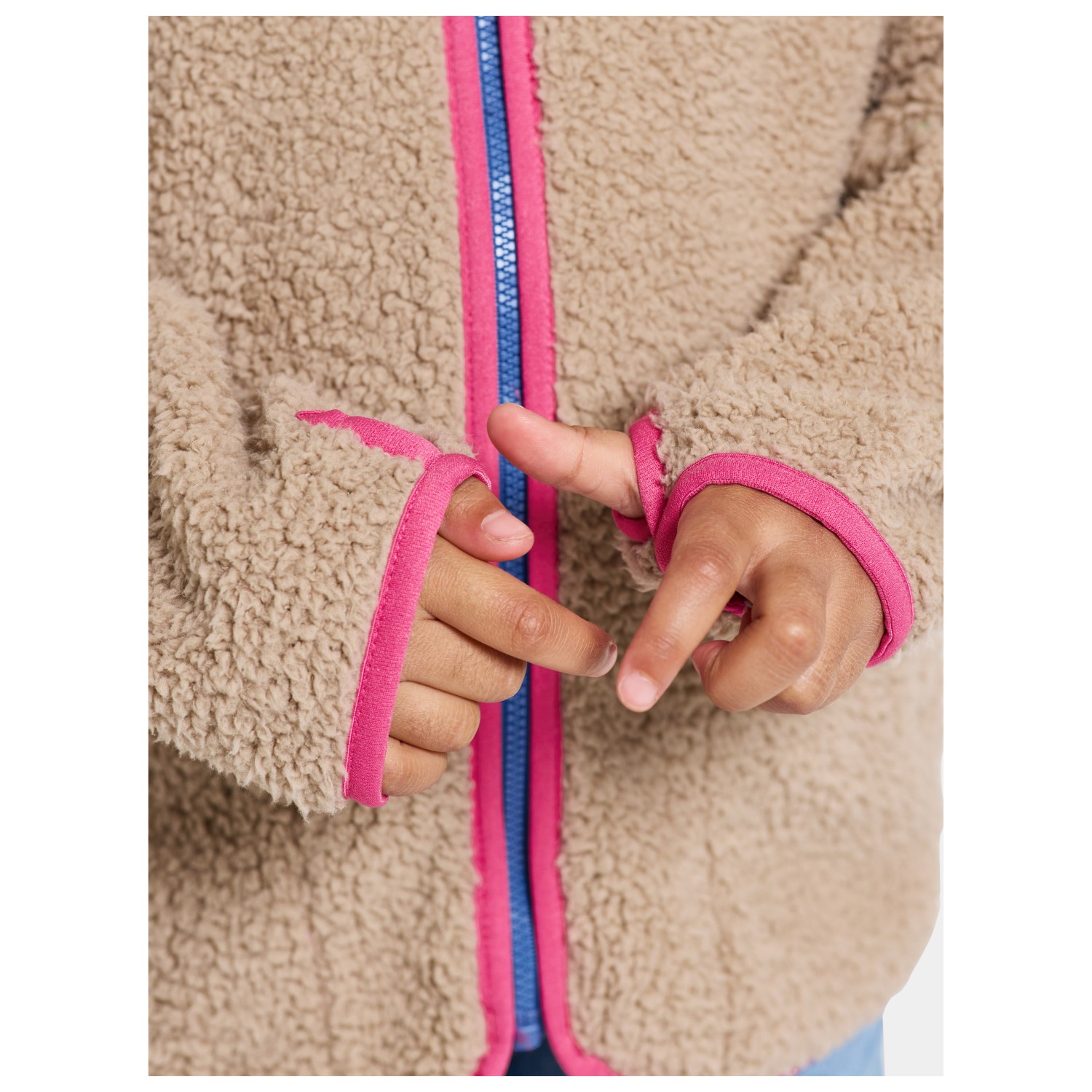 - elastischer Saum, Stehkragen, Daumenschlaufen, elastische Ärmelbündchen
