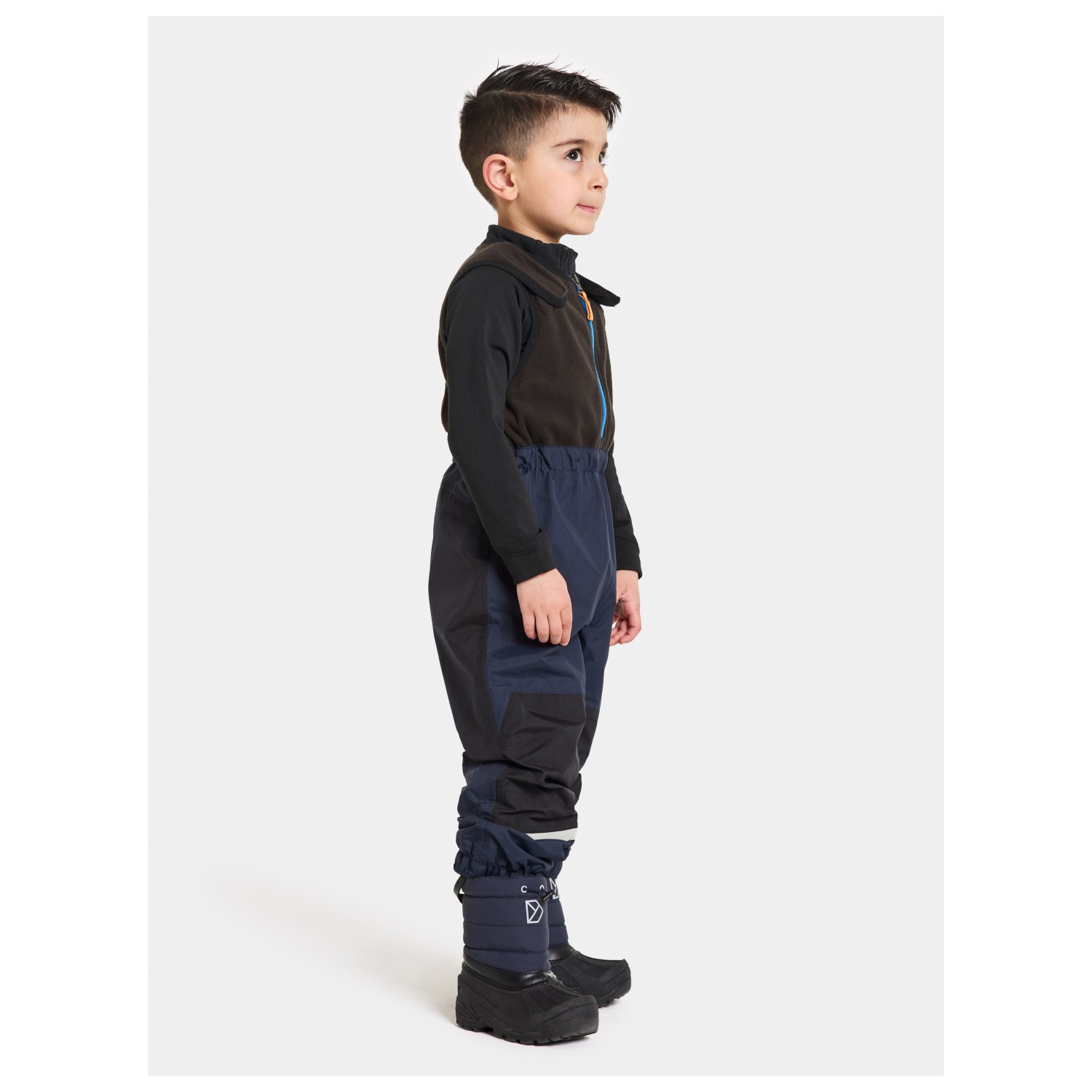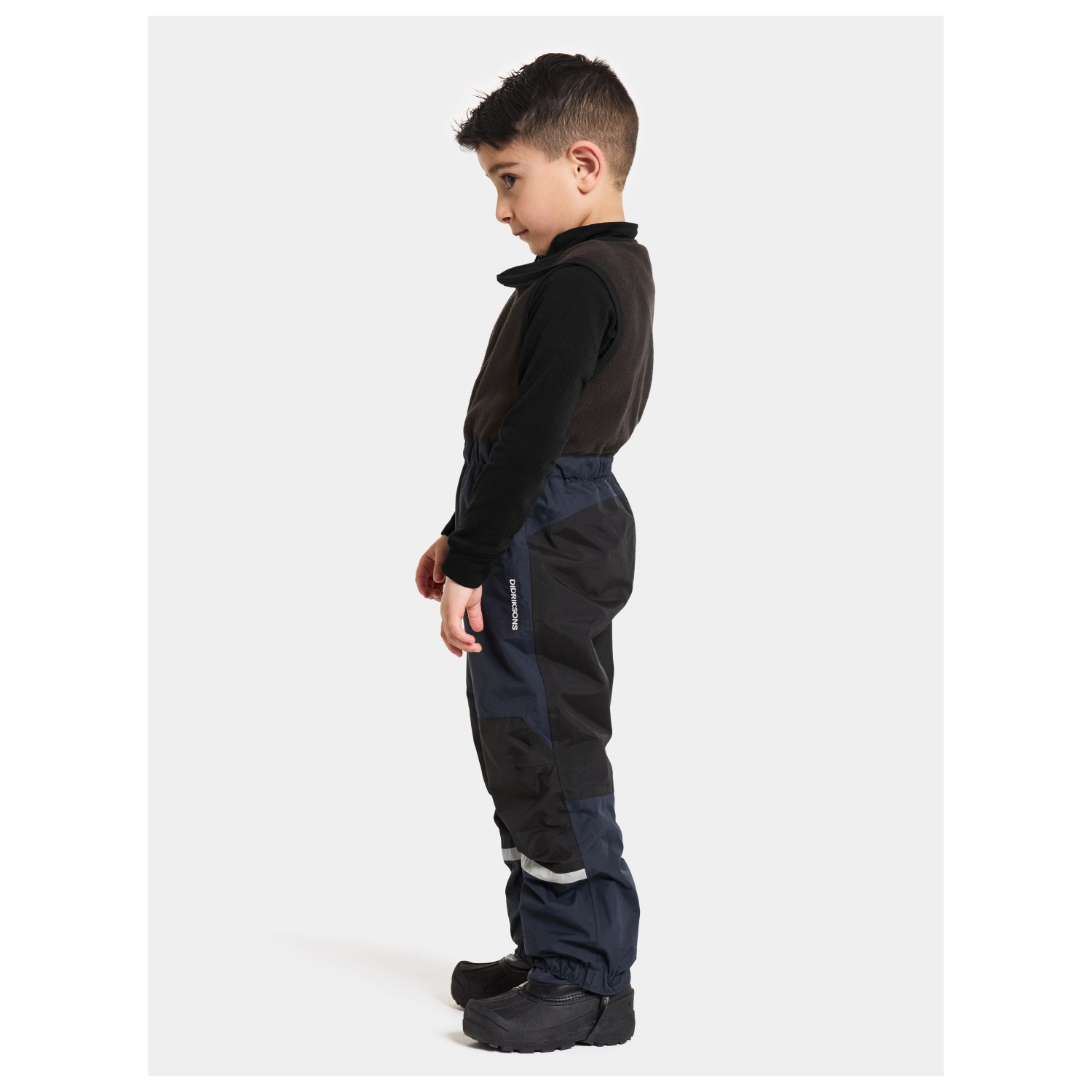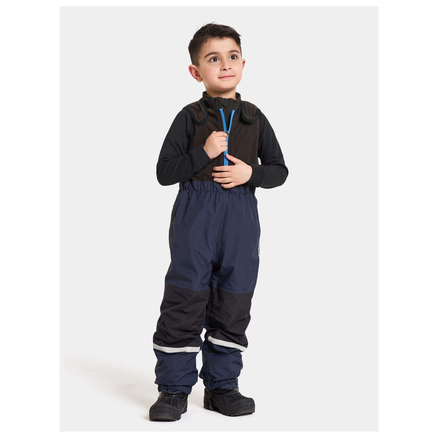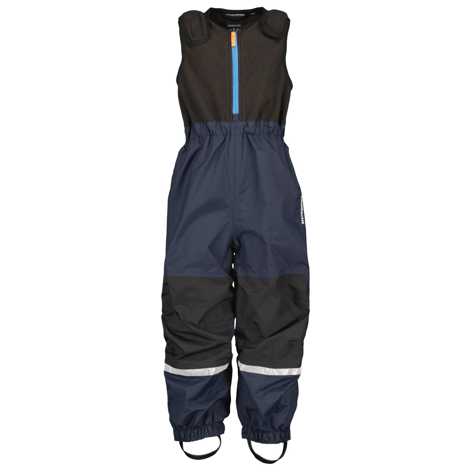 - elastischer Hüftbund, verstellbare Träger, elastische Beinabschlüsse, reflektierende Details, Fußschlaufen