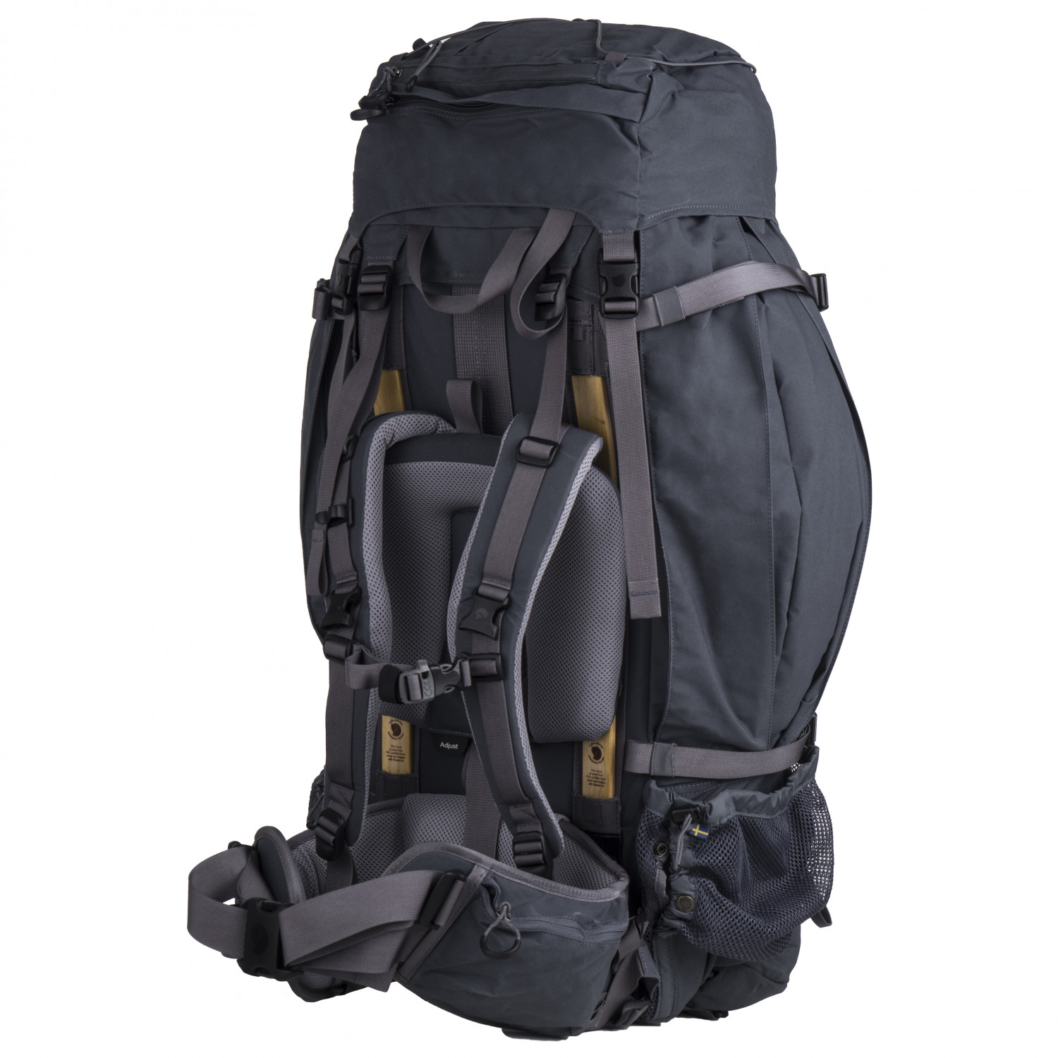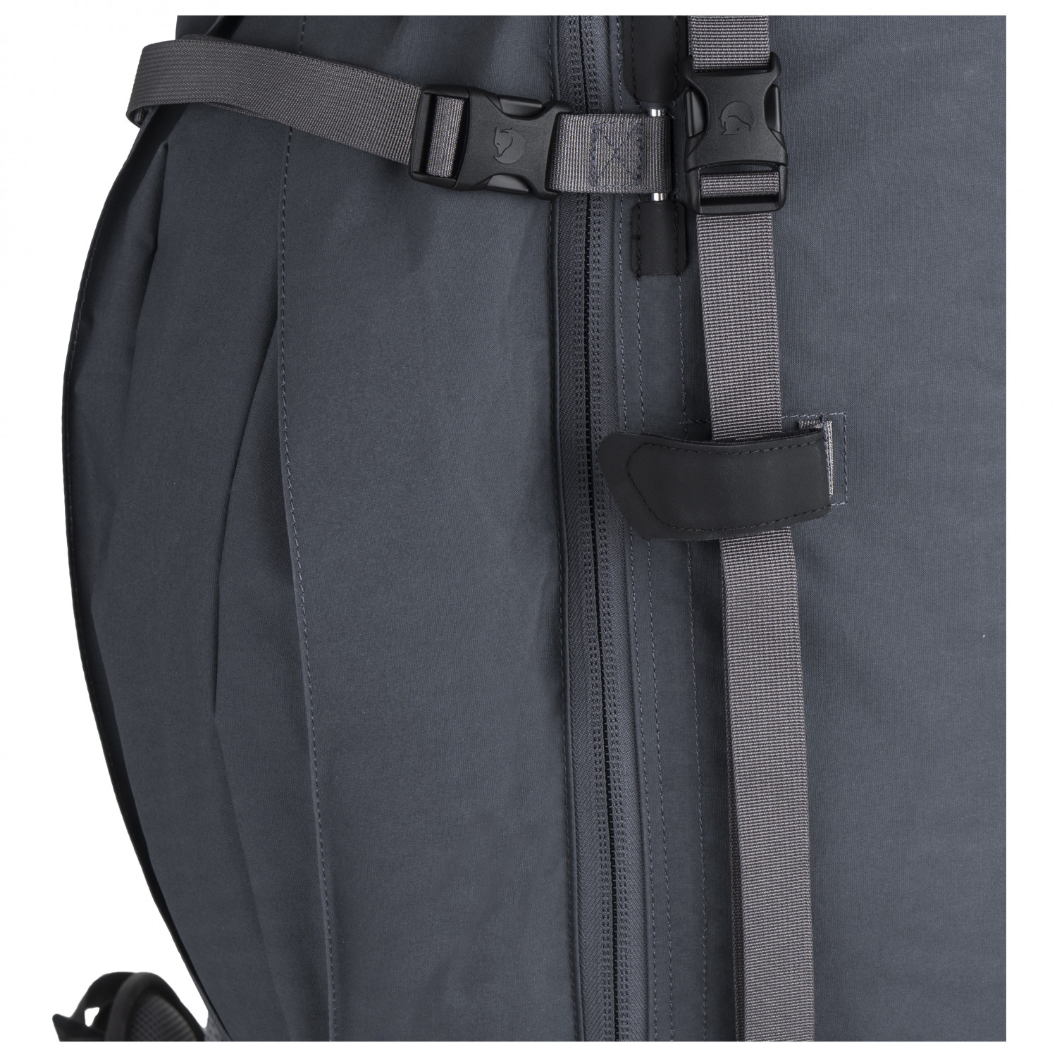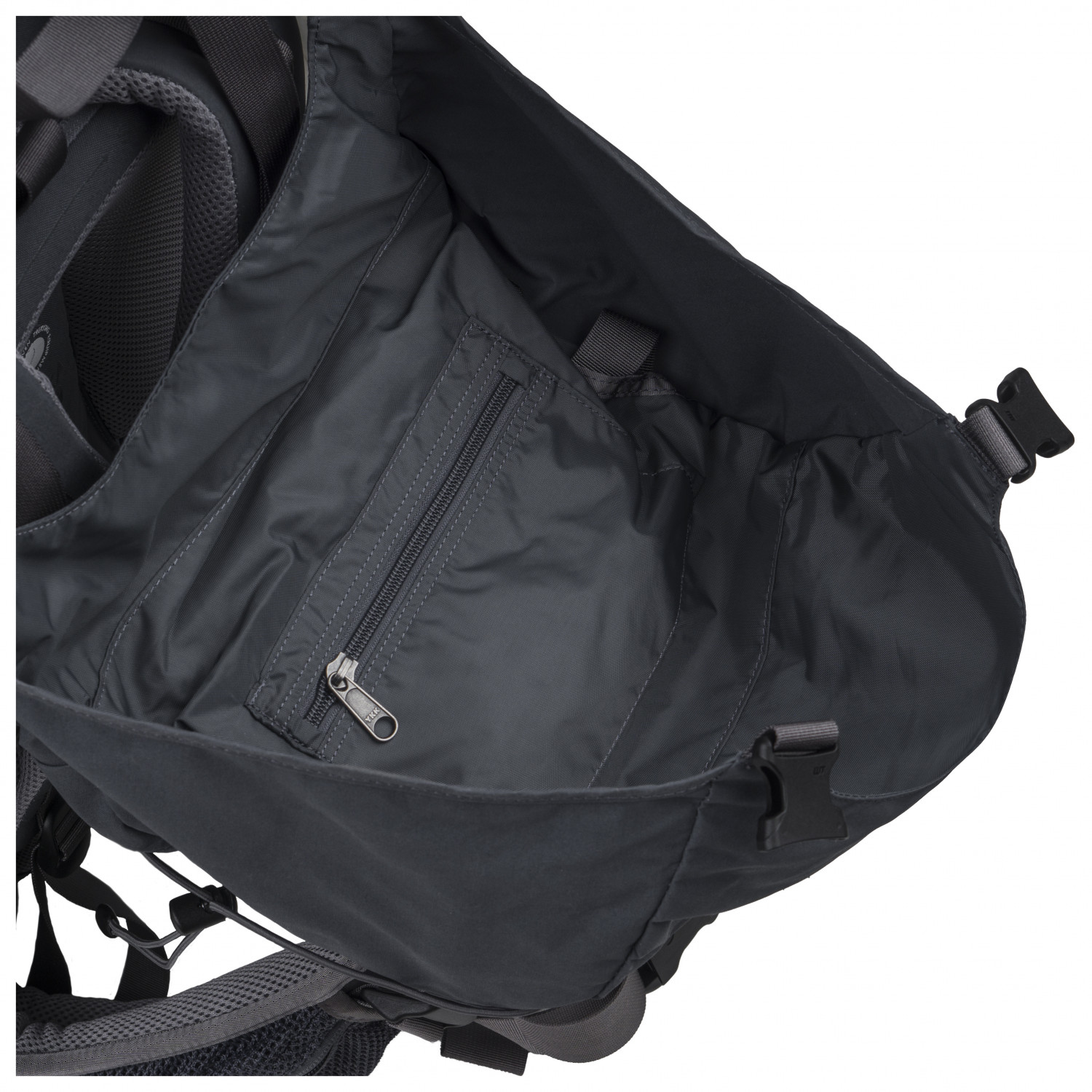 - Eispickel-/Stockhalterung, 2 Seitentaschen, Deckelfach, Bodenfach, 2 Hüftgurttaschen