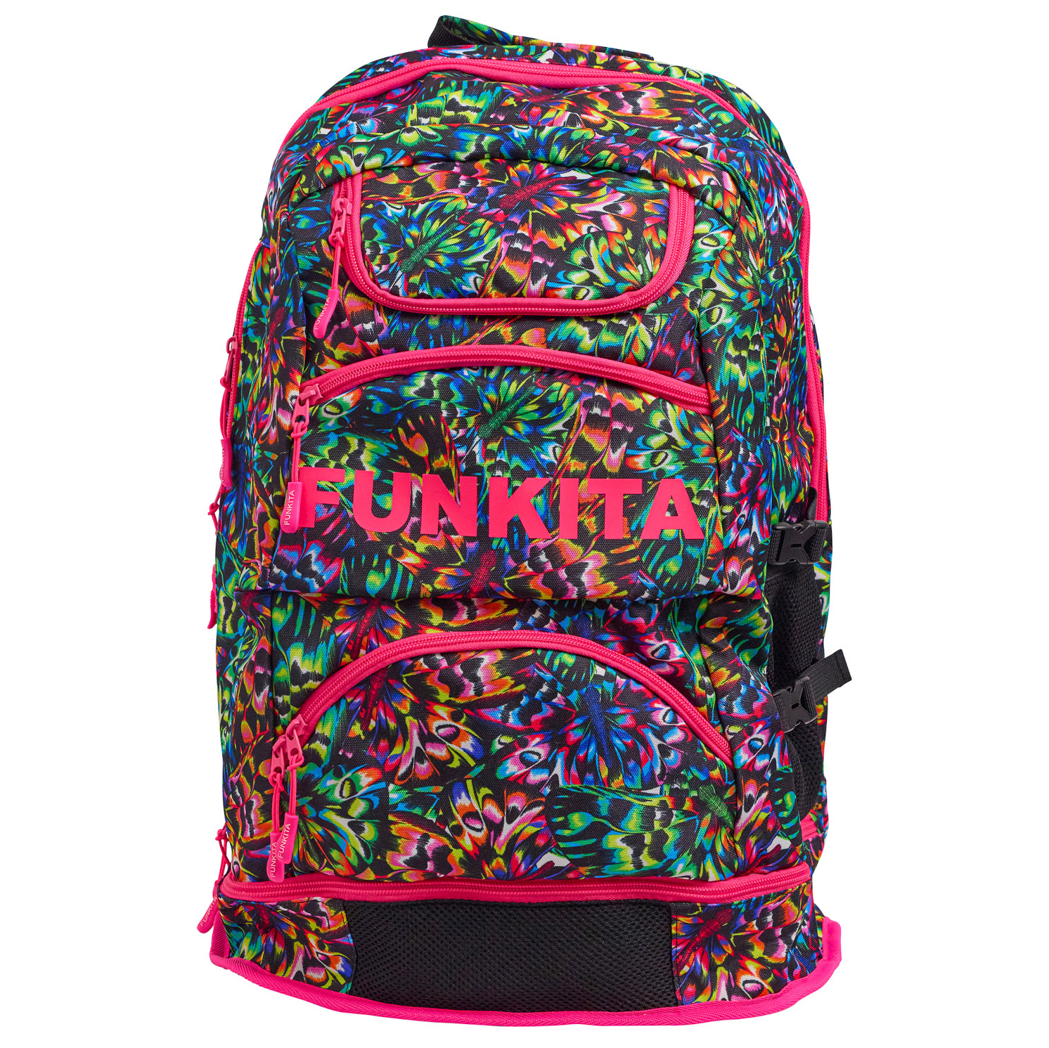 Farbenfroher Rucksack mit zahlreichen Fächern