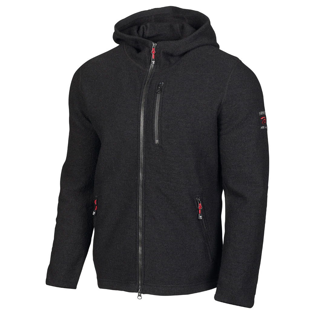 Die Jacke hat ein tolles Material, es ist gestrickt und doch leicht "prerlig" auf der Oberfläche, aber nicht kratzig. Sie wirkt optisch leicht wie gewalkt, es ist aber kein dickes Material und doch sofort schön wärmend. Es trägt auch nicht soviel auf, dass man nicht noch eine Hardshell Jacke drüberziehen könnte, das macht es zusätzlich praktisch. Den Schnitt finde ich perfekt, auch ohne "skandinavisch schlank" zu sein. Es drückt nichts und bollert auch nichts. Hat natürlich ihren Preis ... (Einziger Wermutstropfen: Ich musste sie mir woanders besorgen, da meine Größe in der gewünschten Farbe nicht verfügbar war.)