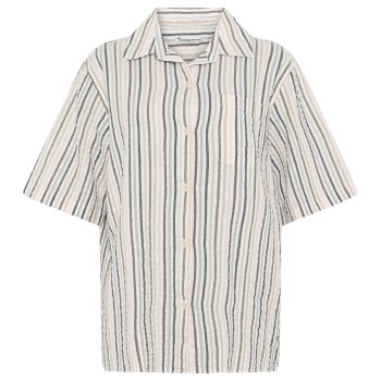 KnowledgeCotton Apparel - Women's Seersucker Stripe Short Sleeved Shirt - Bluse