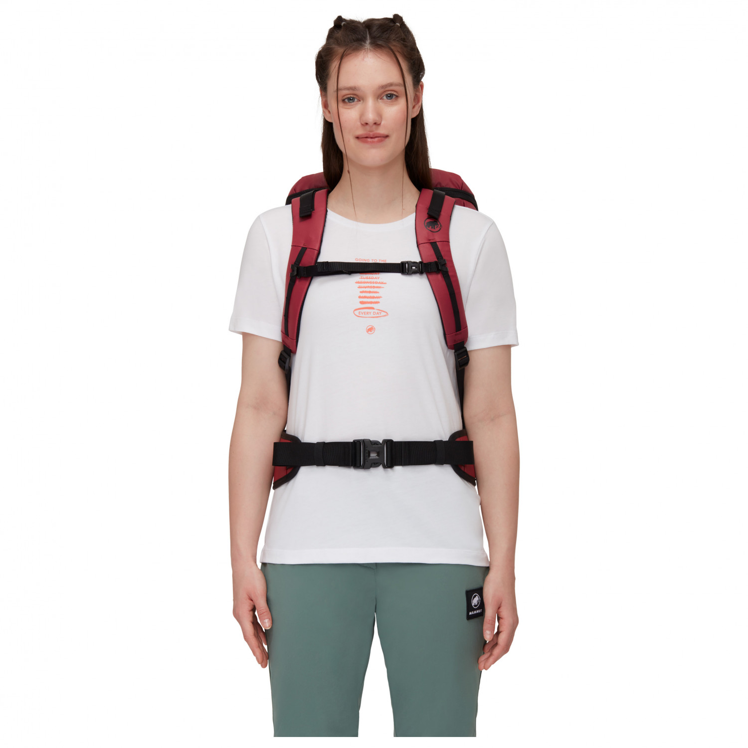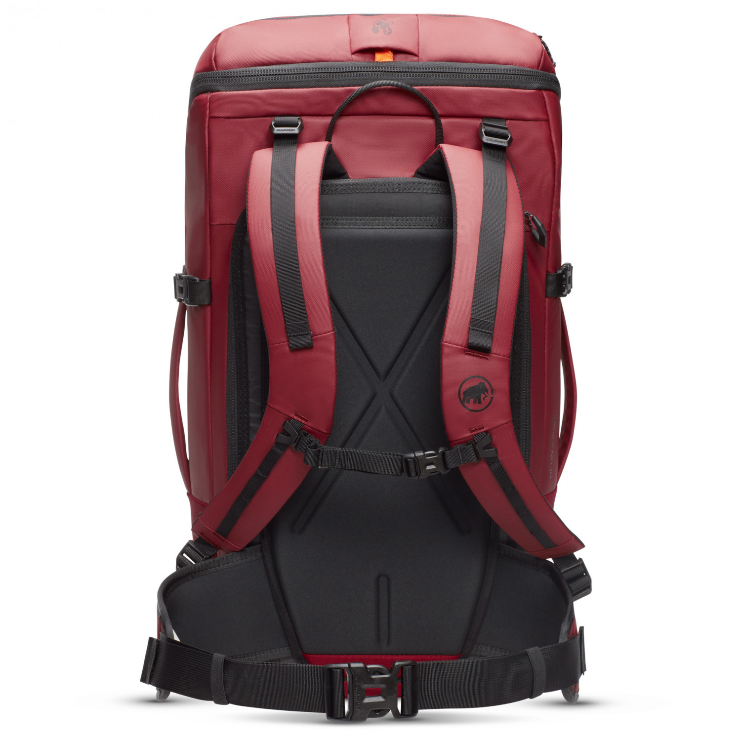 - Seilhalterung, Deckelfach, Materialschlaufen am Hüftgurt