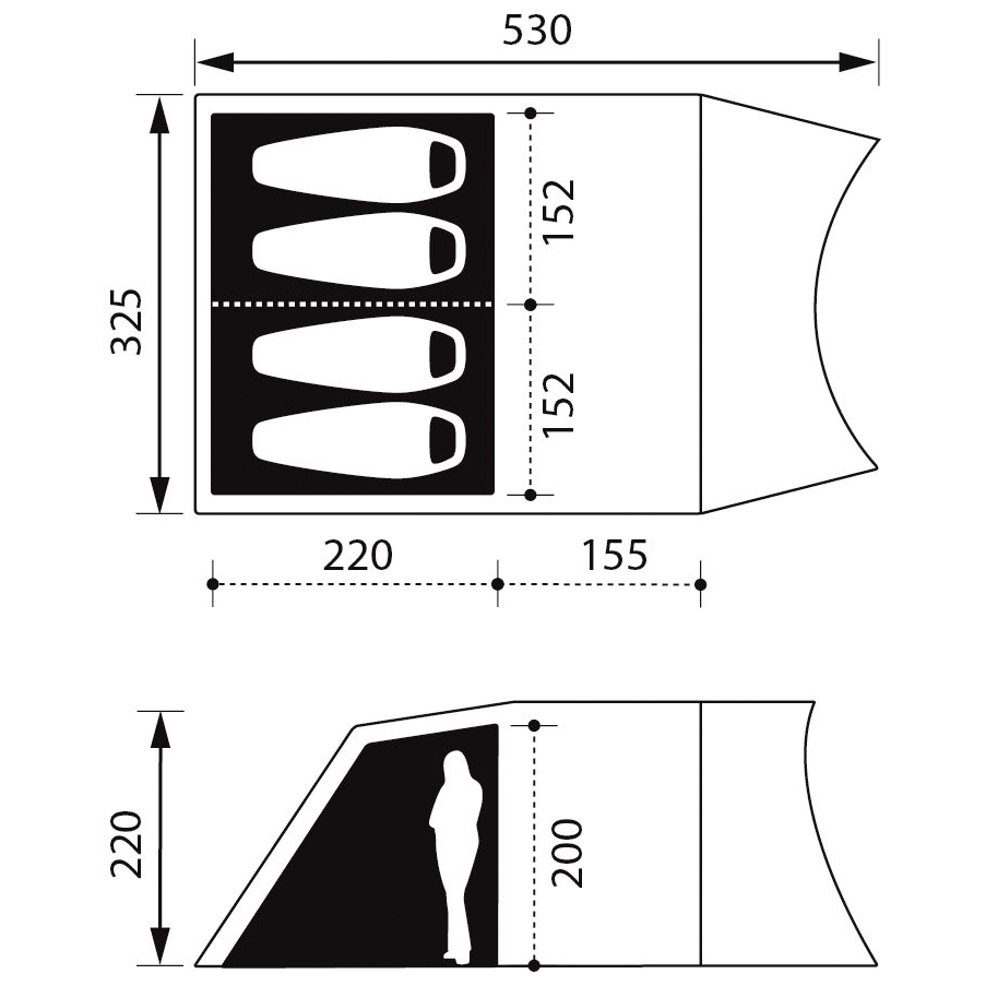 - 530 x 325 x 220 cm (L x B x H)