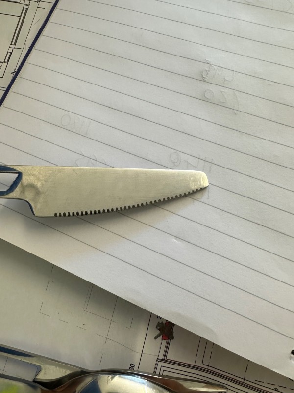 Das Messer könnte vllt ein wenig Schäfer sein, aber es reicht um ein Würstchen zu zerteilen.