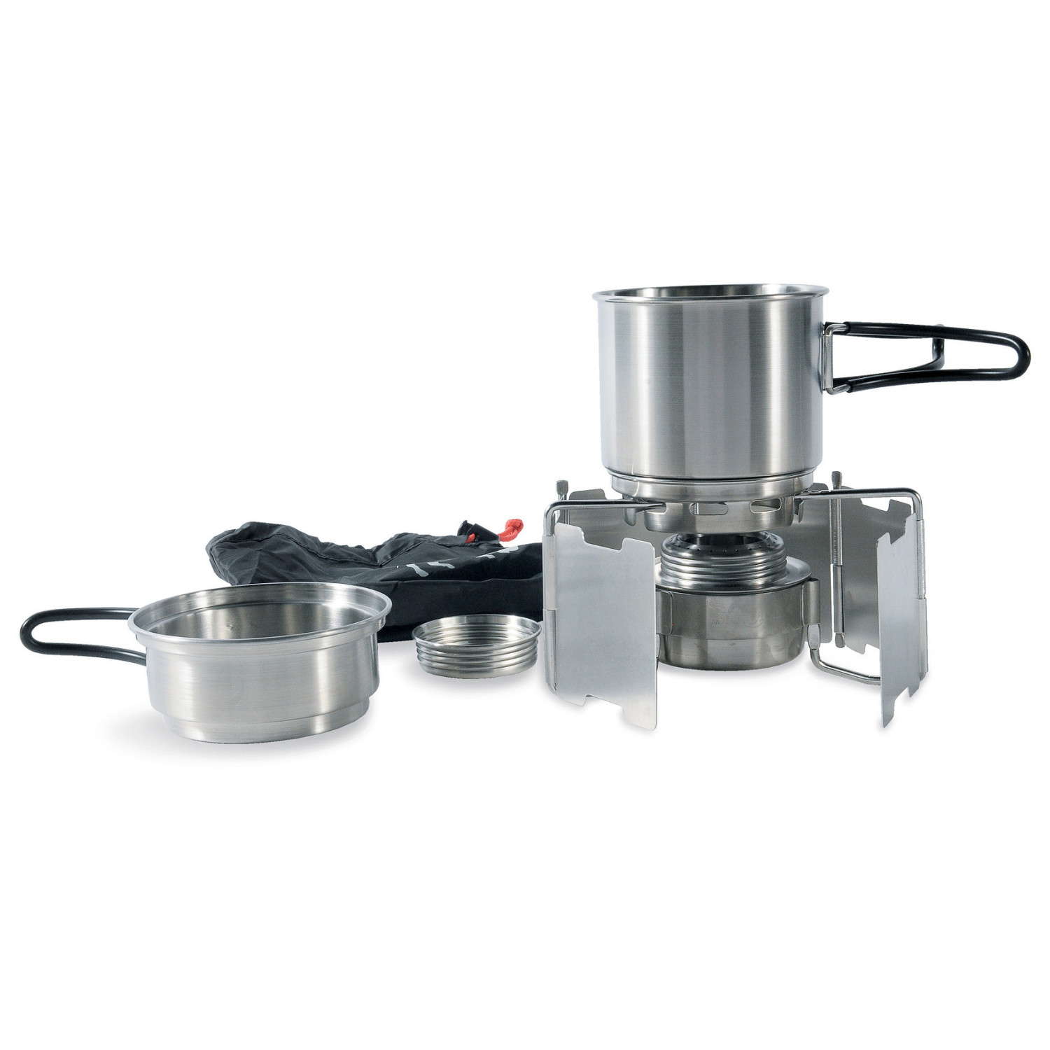 - Set bestehend aus Edelstahltopf, Deckel, Windschutz, Brenner und Packbeutel