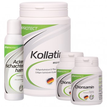 - Chonsamin: 4-6 Kapseln täglich, Ackerschachtelhalm: 3 Kapseln, Kollatin: ca. 12 g