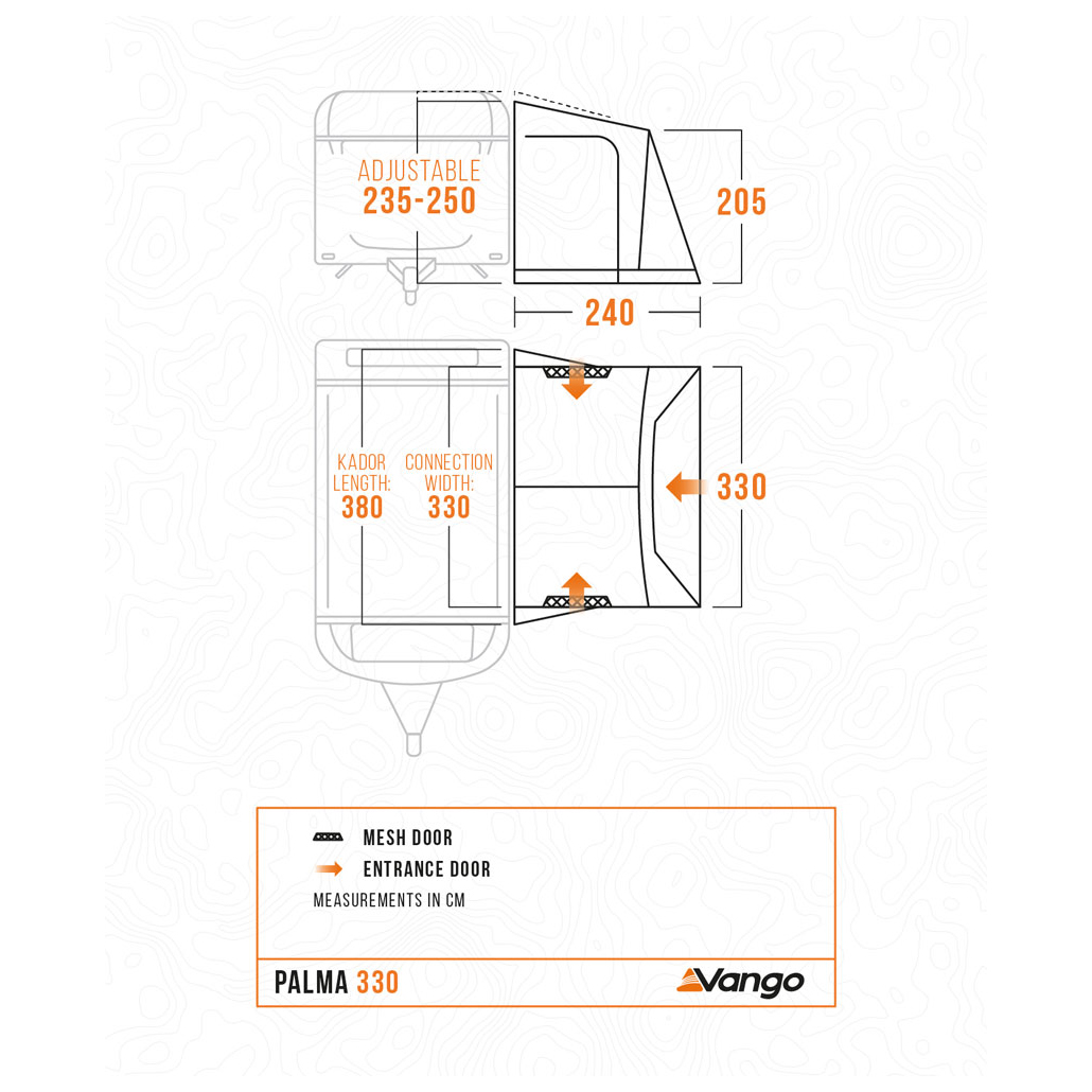 Das Palma 330 von Vango ist ein leichtes und dennoch robustes Busvorzelt, das Dir beim Camping, auf Wochenendausflügen und kurzen Touren zusätzlichen Raum für Entspannung, Essen oder Stauraum bietet. Dank der kompakten Tiefe von 2,4 m passt es selbst auf engere Stellplätze, ohne, dass Du auf Bewegungsfreiheit verzichten musst. Der intuitive PowerDual-Stangenrahmen sorgt dafür, dass das Vorzelt schnell aufgebaut ist. Das Dynamic Weave 100 Material bietet Dir Stabilität und zuverlässigen Schutz, während Windschutzleiste und Radkastenabdeckung kalte Luft effektiv fernhalten.